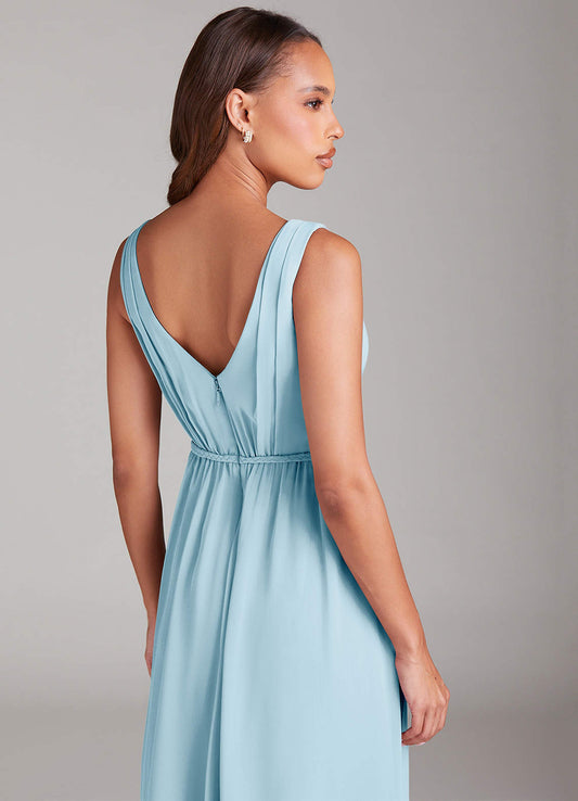 Dusty Sage Mermaid V-Neck Pleated Chiffon Dress