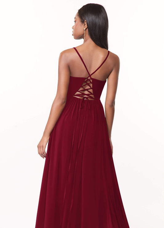 Burgundy A-Line Long Sleeve Chiffon Dress