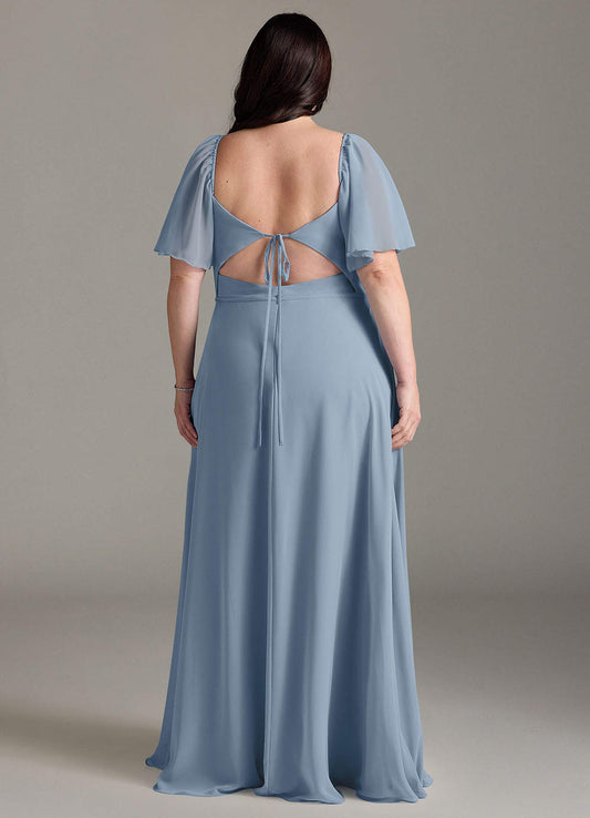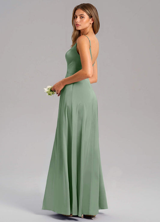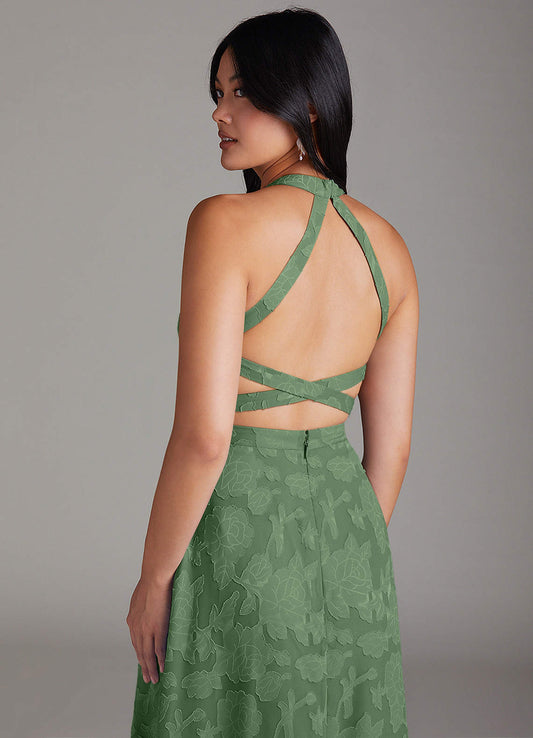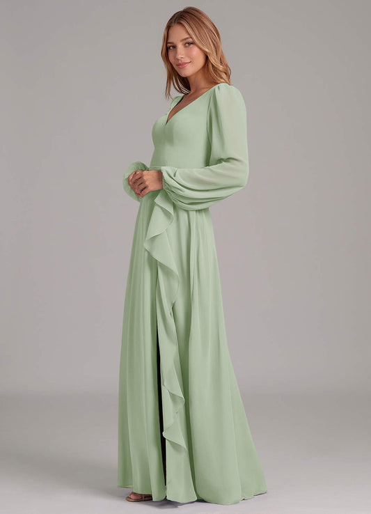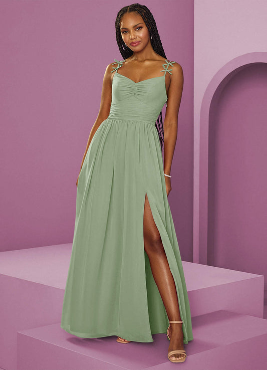 A-Line Pleated Chiffon Floor-Length Dress Matcha