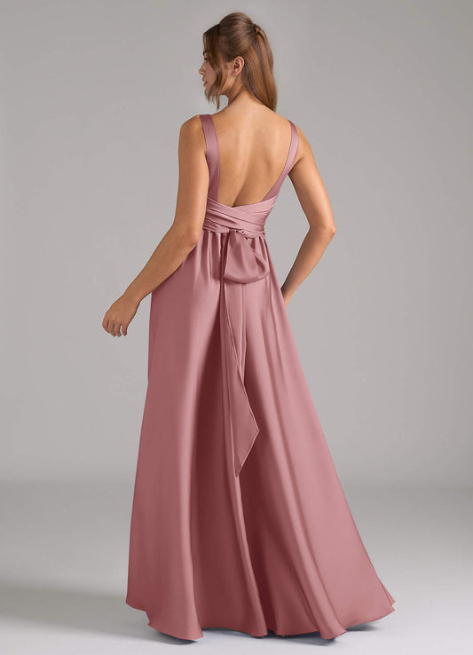 Blushing Pink A-Line Pleated Stretch Satin Dress