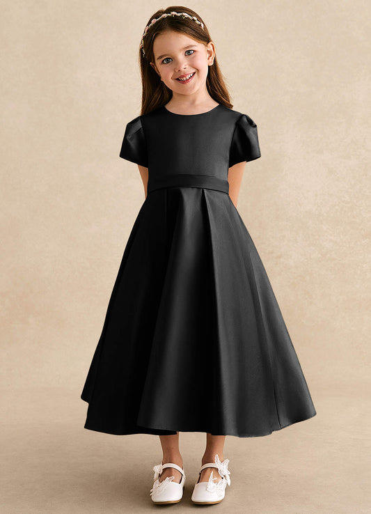 Dusty Blue A-Line Pleated Matte Satin Dress