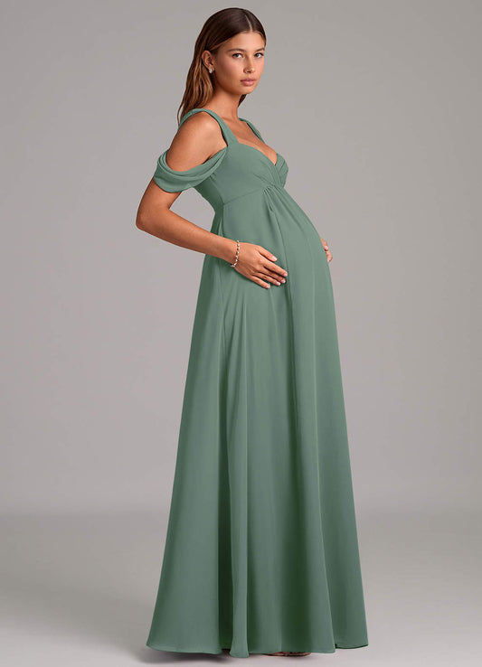 A-Line Pleated Chiffon Floor-Length Dress Sky Blue