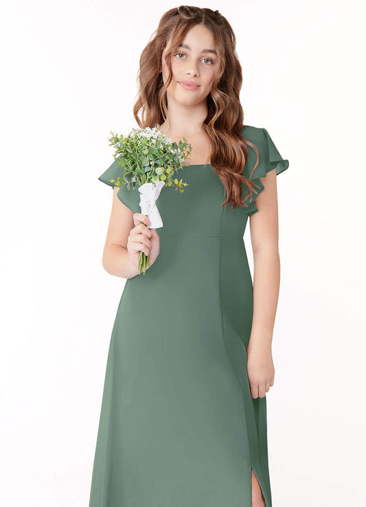Dusty Sage A-Line with Belt Stretch Satin Dress