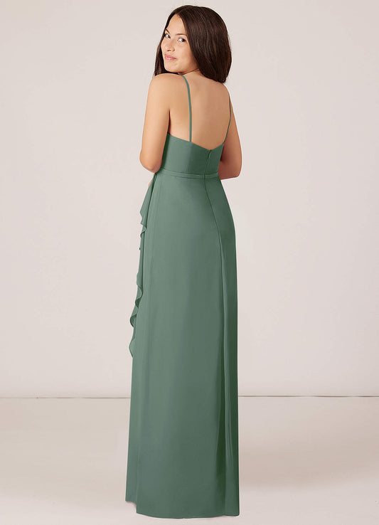 Dusty Sage A-Line Off the Shoulder Chiffon Dress