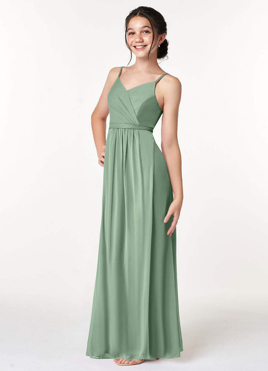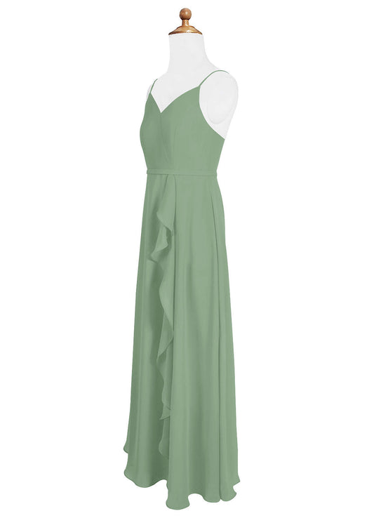 Dusty Sage A-Line Off the Shoulder Chiffon Dress