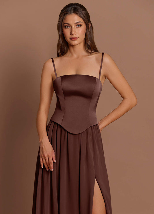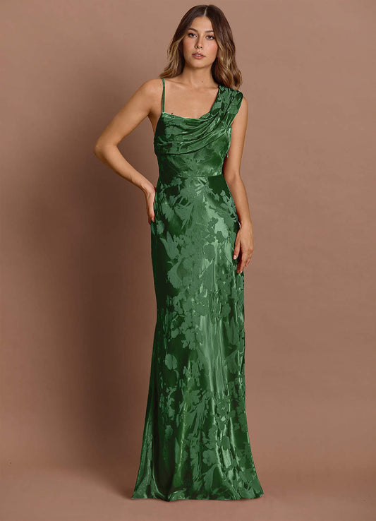Brooke Navy A-Line One Shoulder Stretch Satin Dress