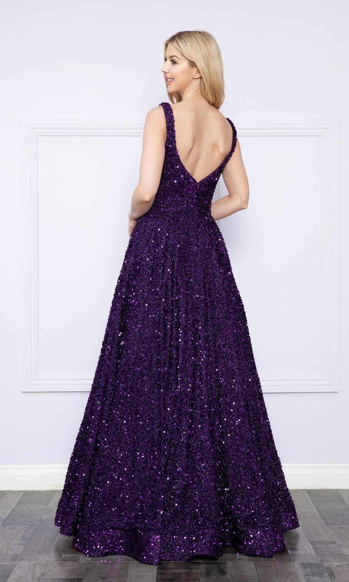 Velvet-Sequin Long A-Line Prom Gown: Poly USA 9106