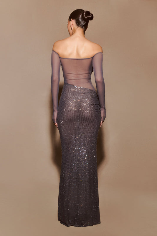 Nash Diamante Off Shoulder Maxi Dress - Gunmetal