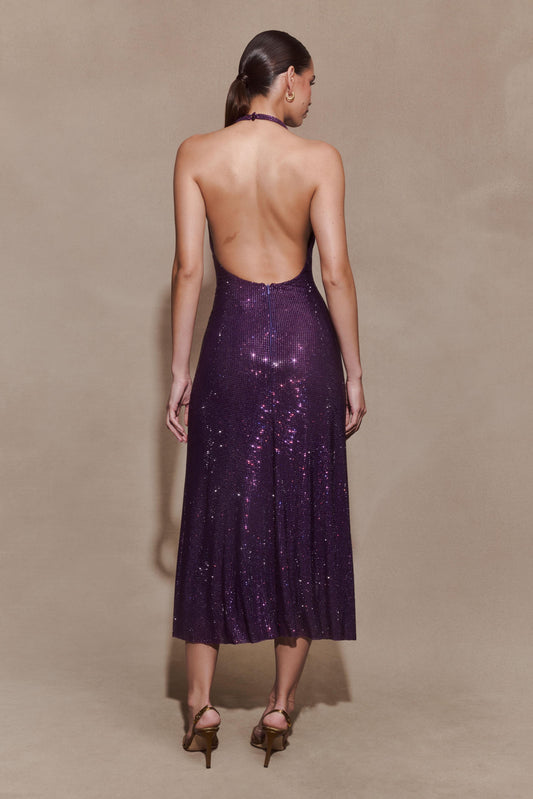 Marcia Diamante Long Sleeve Maxi Dress - Nude