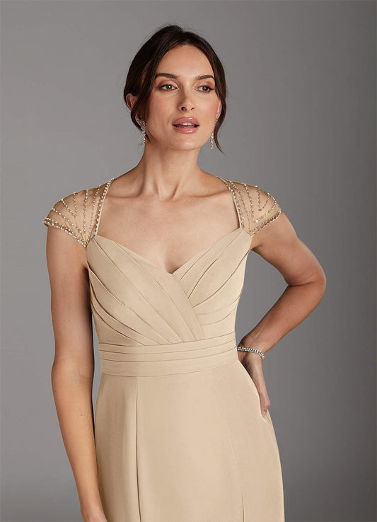 Dusty Rose Sheath Pleated Cape Metallic Mesh Dress