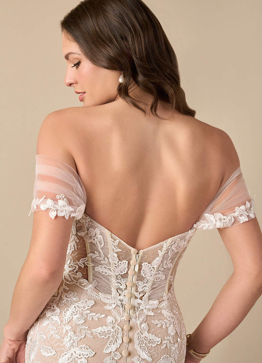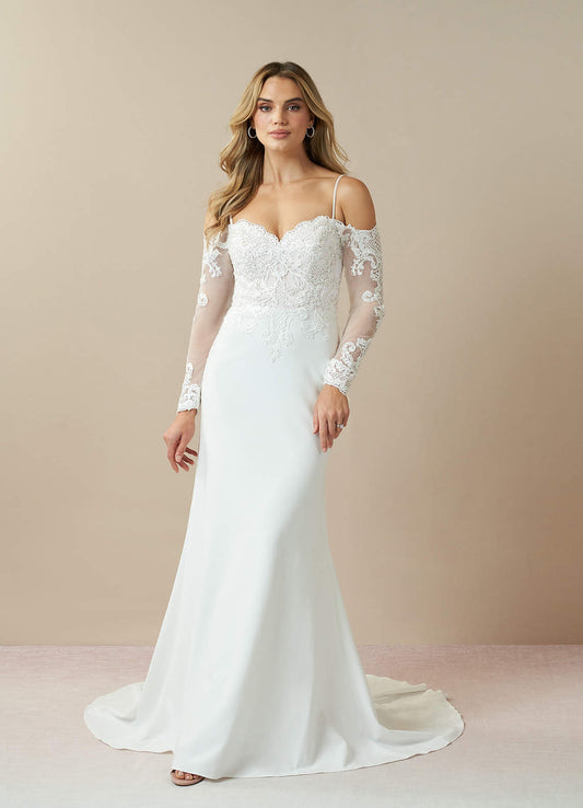 Diamond White Mermaid Off the Shoulder Stretch Crepe Dress