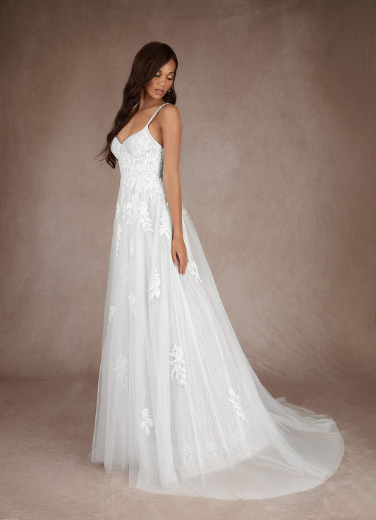 Diamond White A-Line Lace Tulle Dress