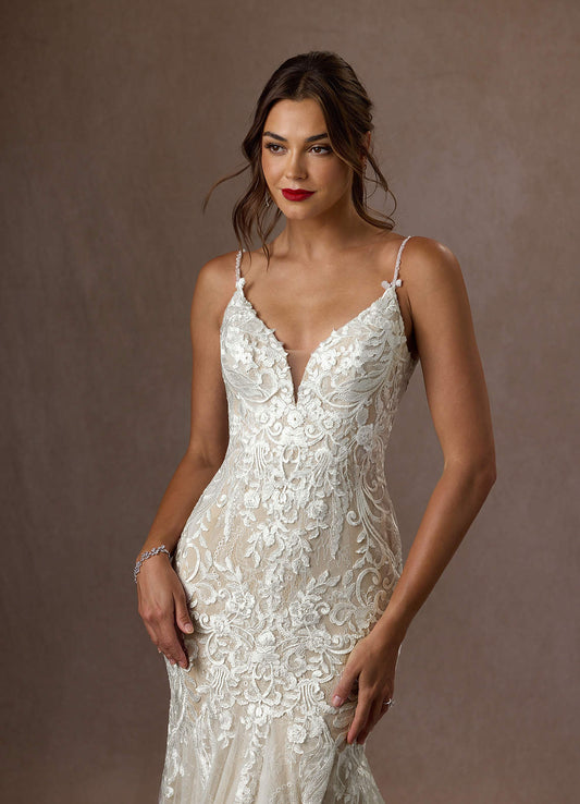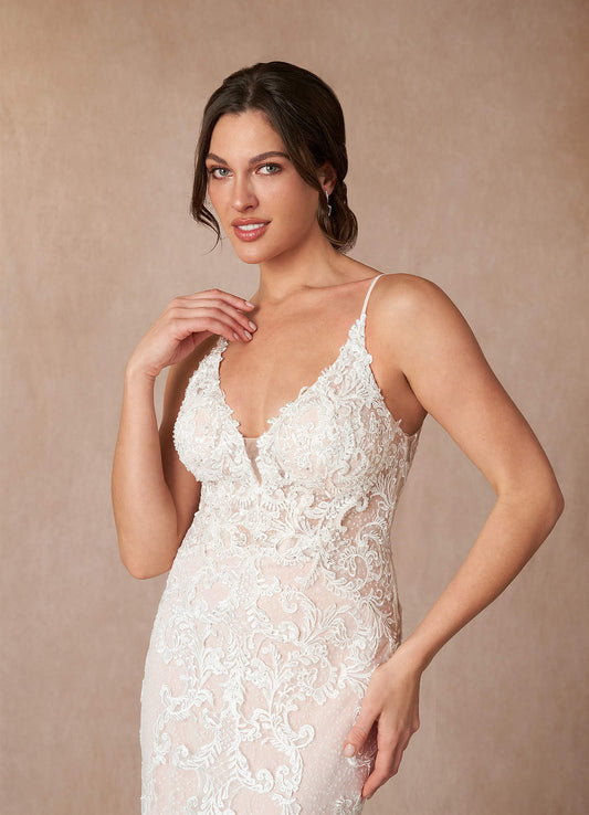 Diamond White Mermaid V-Neck Lace Dress