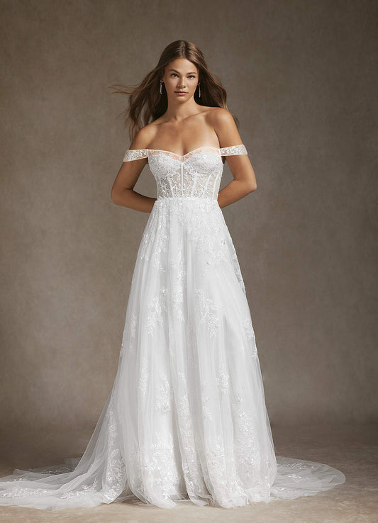 Diamond White A-Line Off the Shoulder Tulle Dress