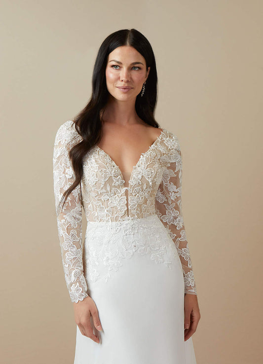 Diamond White Mermaid Lace Crepe Back Satin Dress