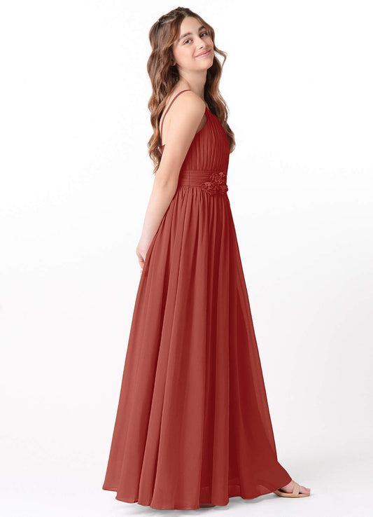 Terracotta A-Line Off the Shoulder Chiffon Dress
