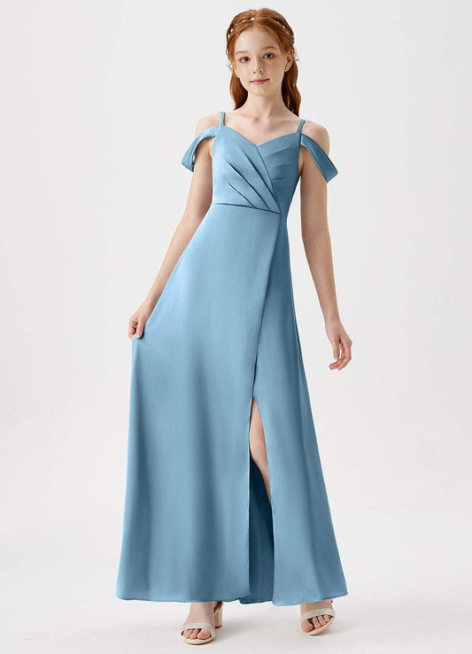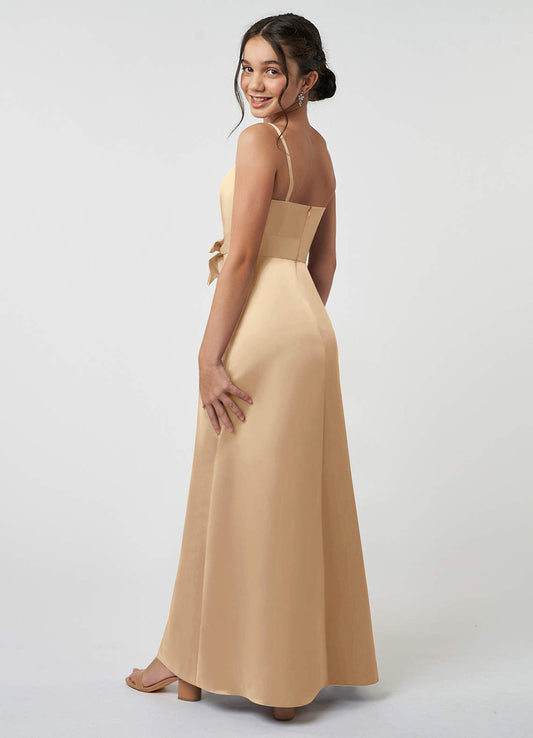 Champagne A-Line Off the Shoulder Stretch Satin Dress