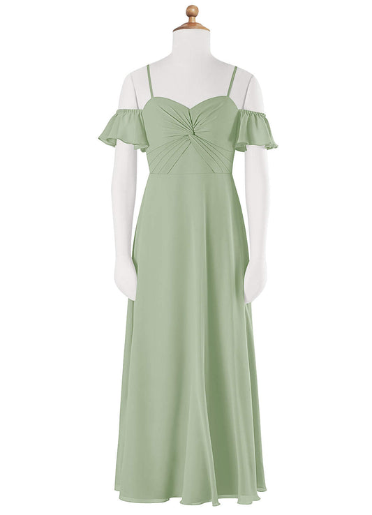Dusty Sage A-Line Off the Shoulder Chiffon Dress
