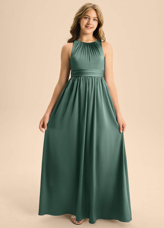 Dusty Sage A-Line Pleated Stretch Satin Dress