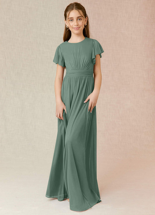 Sky Blue A-Line Pleated Stretch Satin Dress