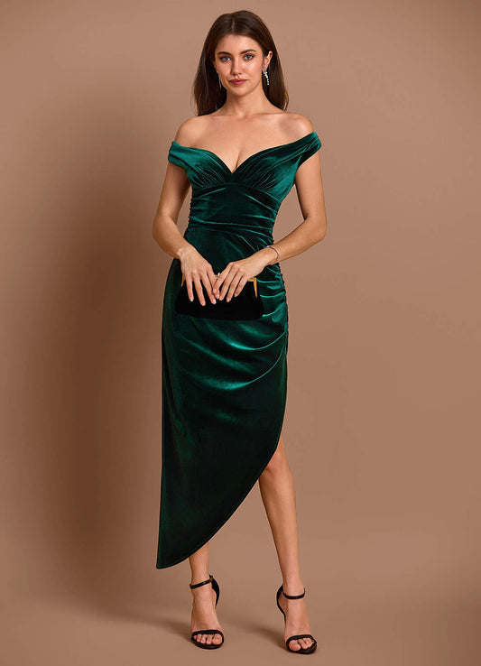 Brooke Navy A-Line One Shoulder Stretch Satin Dress