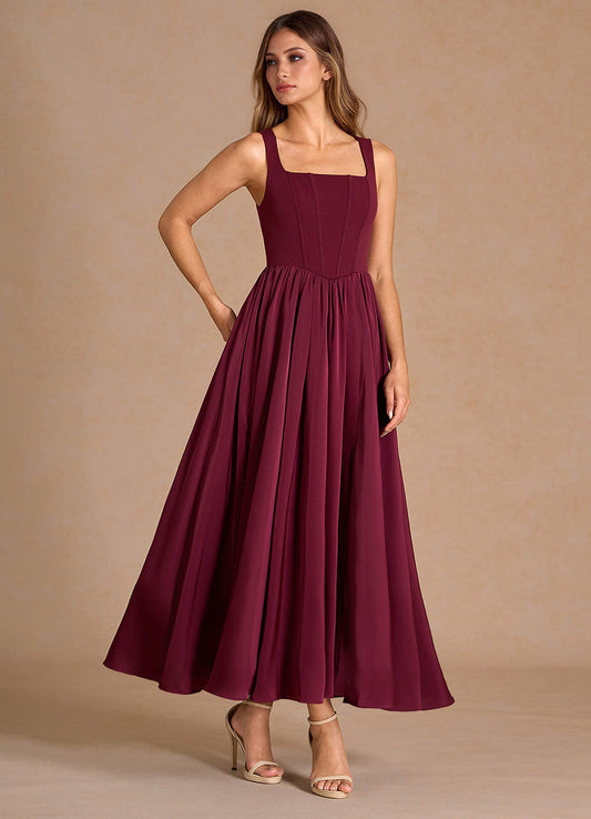 Dusty Sage A-Line Spaghetti Strap Chiffon Dress