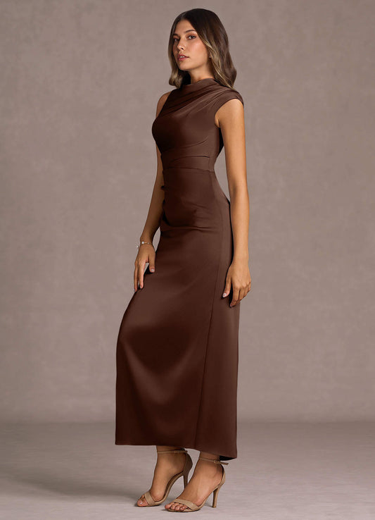 Frosted Lilac Ball-Gown Pleated Matte Satin Dress