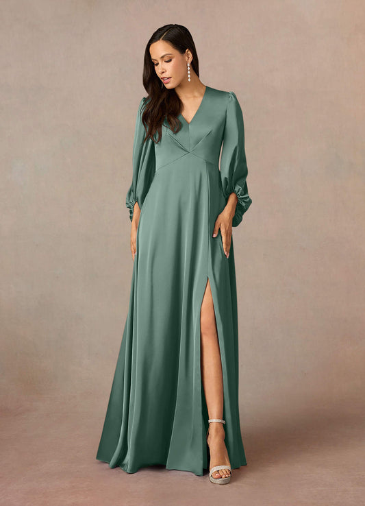 Eucalyptus A-Line Pleated Stretch Satin Dress
