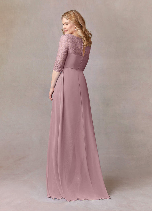 Blushing Pink A-Line Scoop lace Chiffon Dress