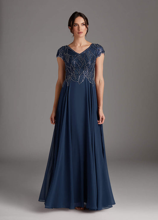 Dark Navy Mermaid V-Neck Sequins Chiffon Dress
