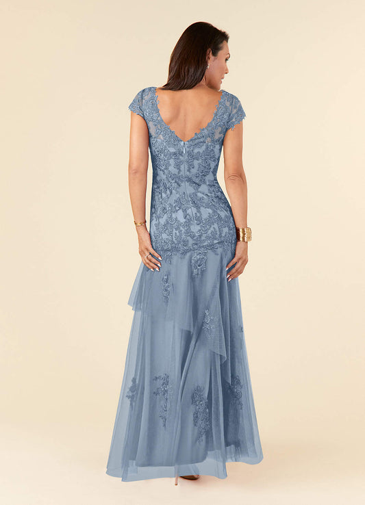 Dusty Blue A-Line V-Neck Sequin Lace Lace Dress