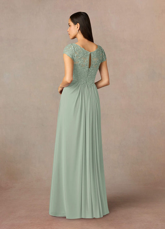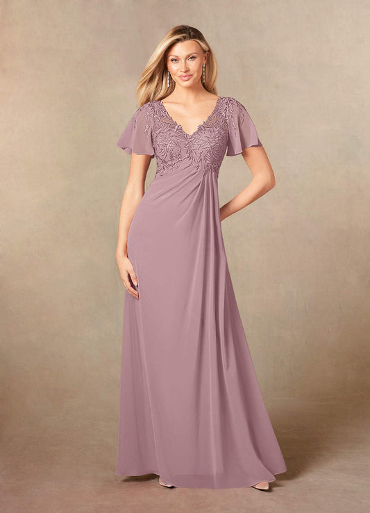 Dusty Rose A-Line V-Neck Lace Chiffon Dress