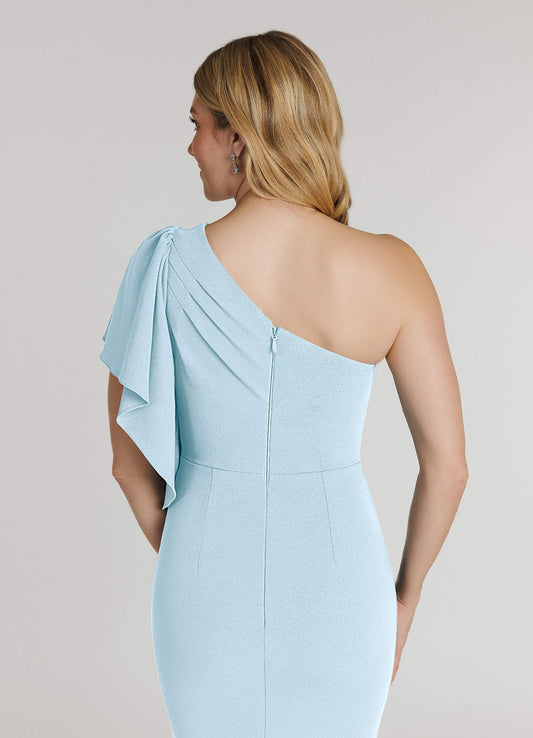 Dusty Blue Mermaid Pleated Stretch Chiffon Dress