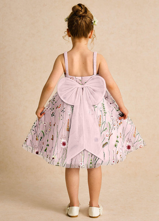 Blushing Pink Ball-Gown Bow Matte Satin Dress