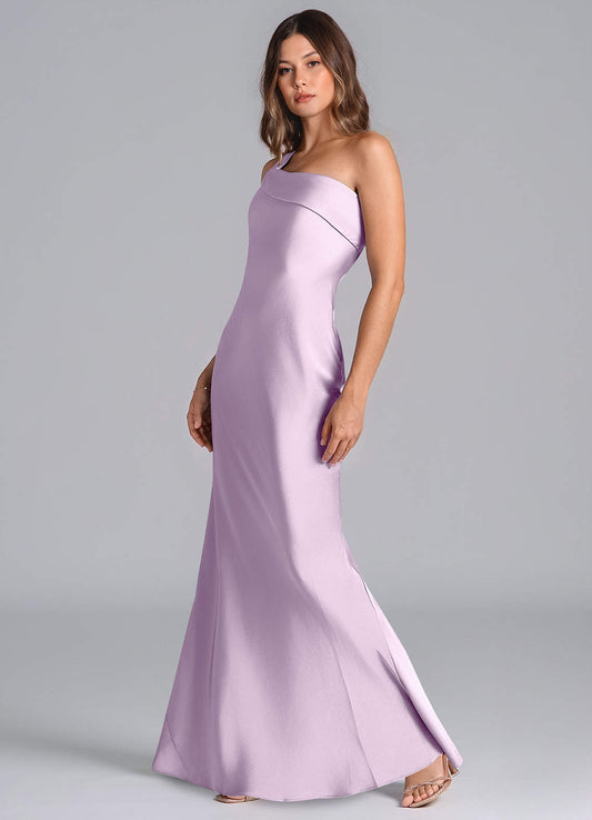 Blushing Pink Mermaid One Shoulder Stretch Satin Dress