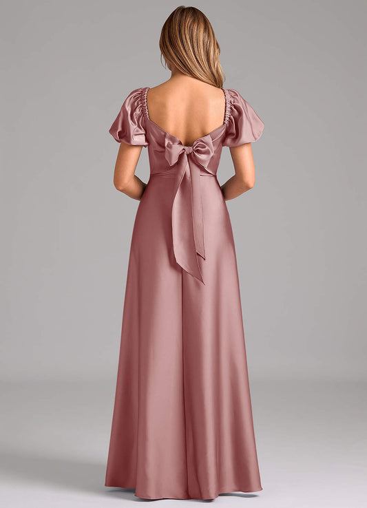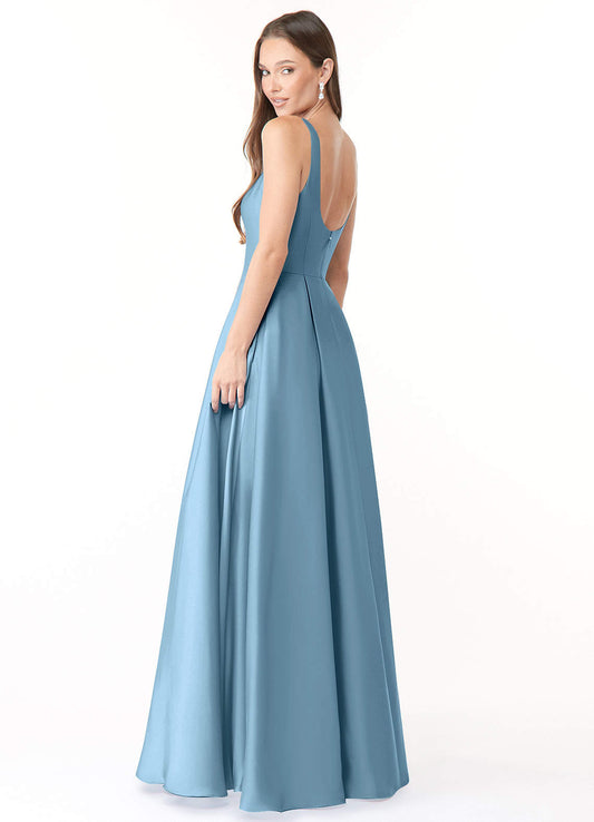 Dusty Blue A-Line Sweetheart Neckline Stretch Satin Dress