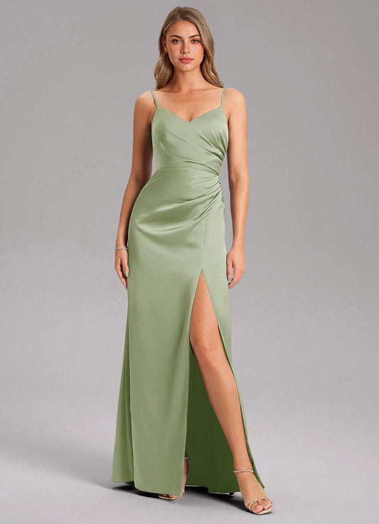 Dusty Blue A-Line Pleated Stretch Satin Dress