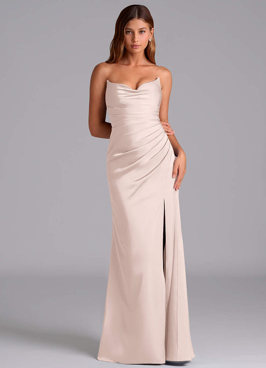 Dusty Rose Mermaid Strapless Stretch Satin Dress