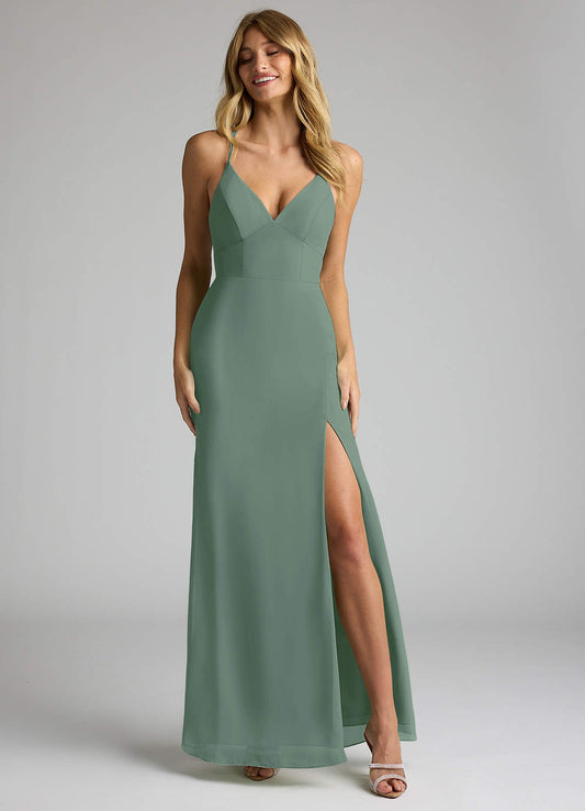 Dusty Sage Mermaid Side Slit Chiffon Convertible Dress