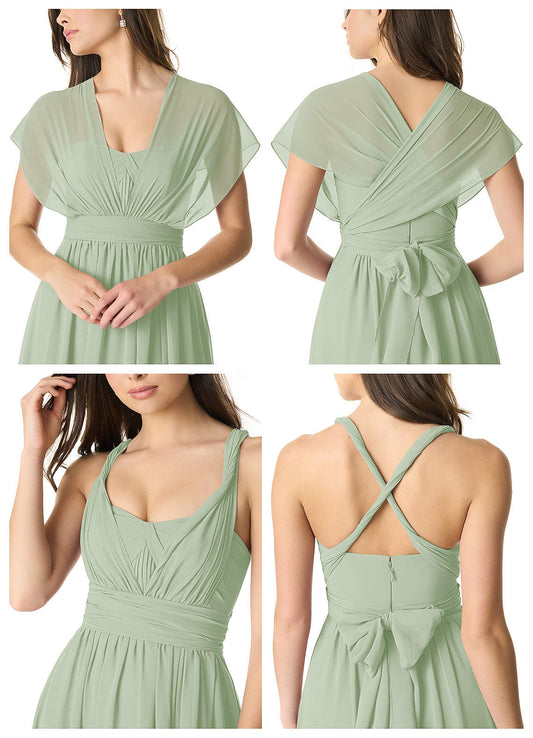 Dusty Blue A-Line One Shoulder Chiffon Convertible Dress