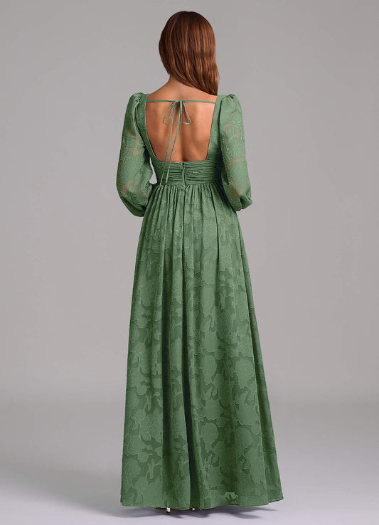 Eucalyptus A-Line Square Neckline Ruched Chiffon Dress