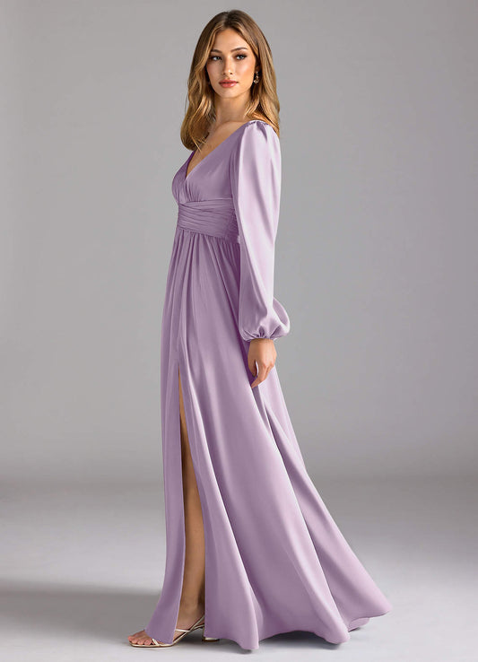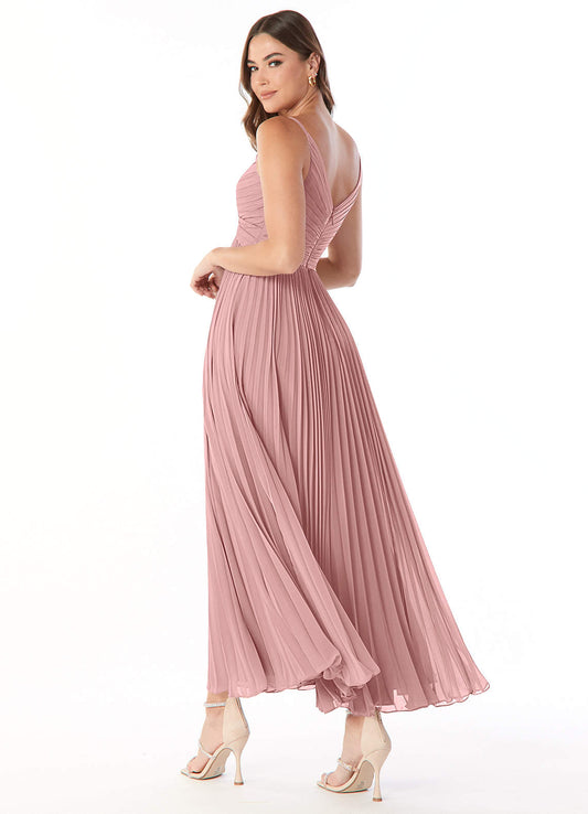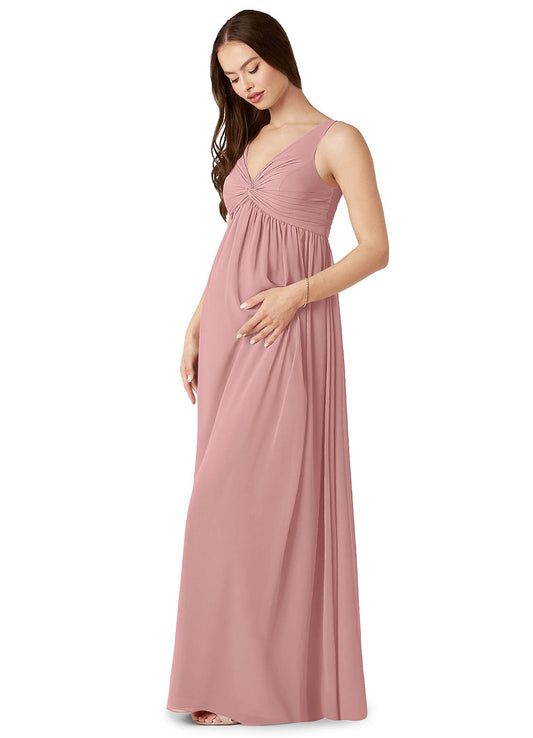 A-Line V-Neck Gathered Chiffon Floor-Length Dress Blushing Pink