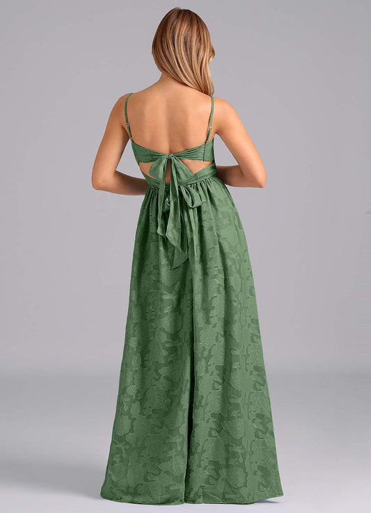 Dusty Sage A-Line Bow Floral Burnout Dress