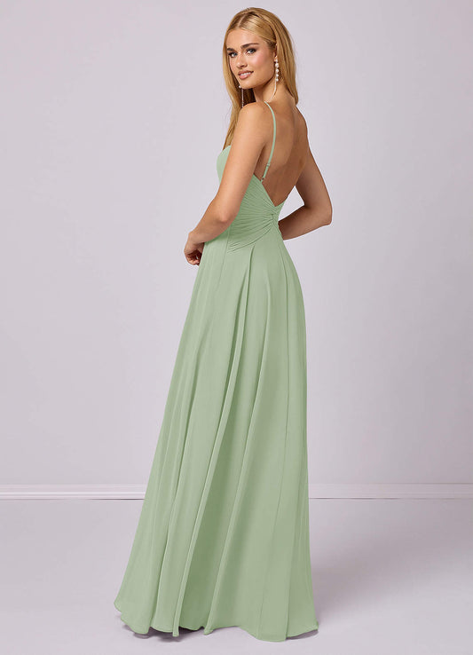 Dusty Sage A-Line V-Neck Pleated Chiffon Dress