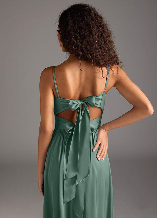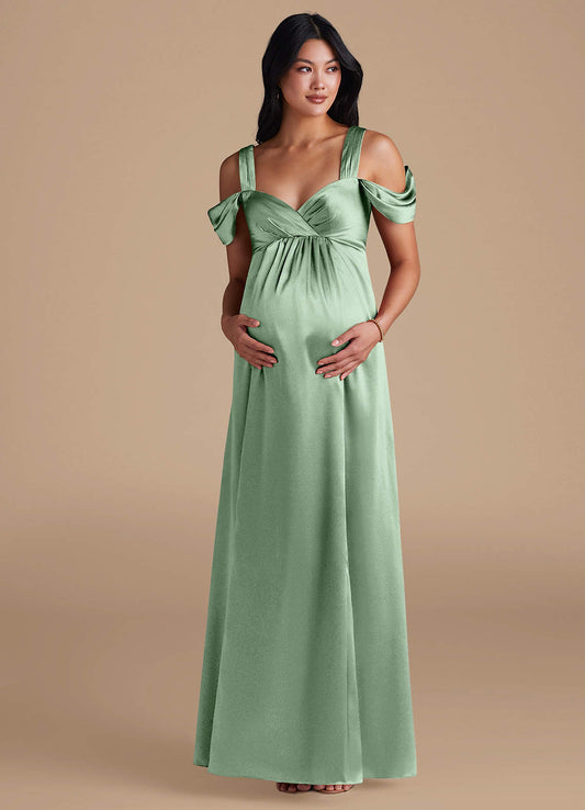 Matcha A-Line Off the Shoulder Stretch Satin Convertible Dress
