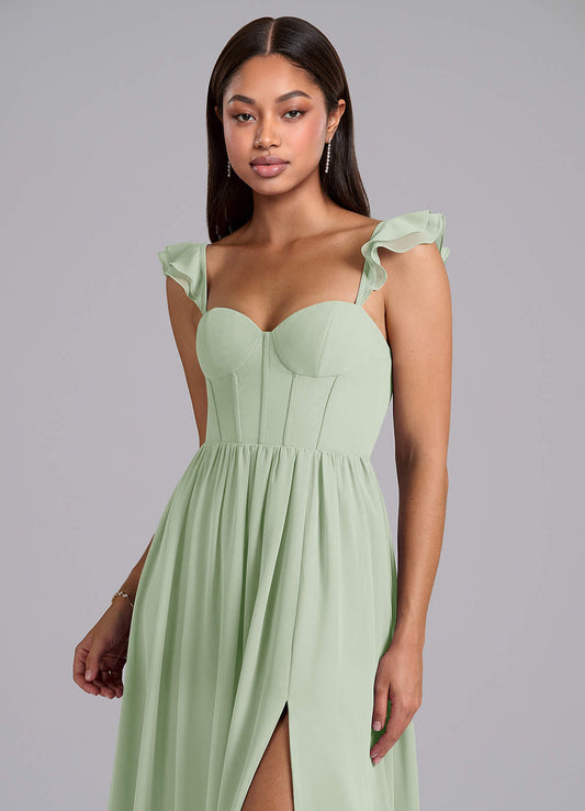 Eucalyptus A-Line with Pockets Chiffon Dress Eucalyptus