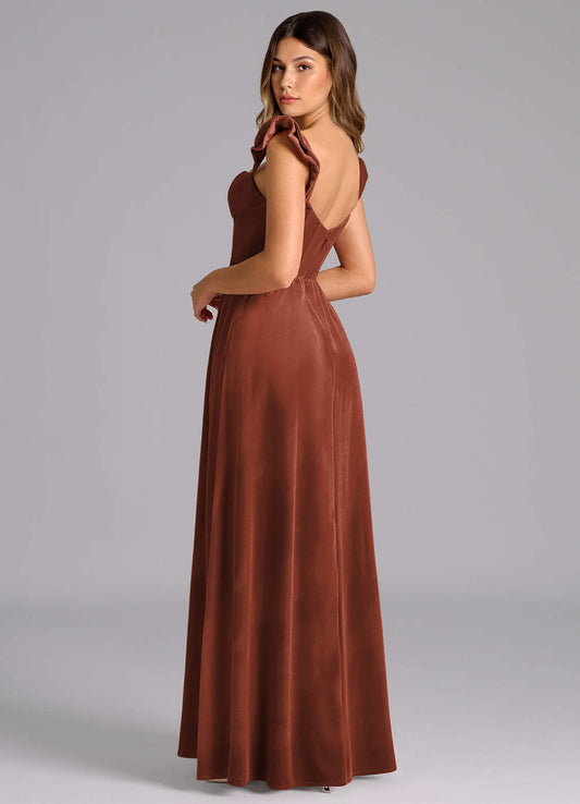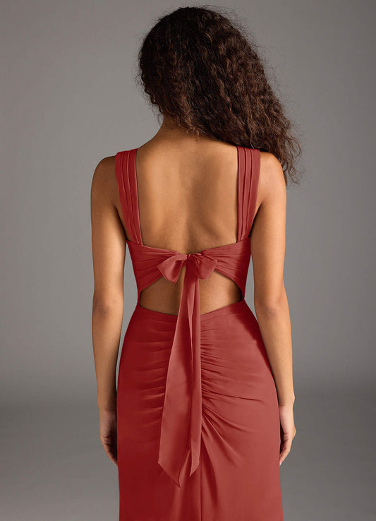 Rust A-Line Ruched Chiffon Dress