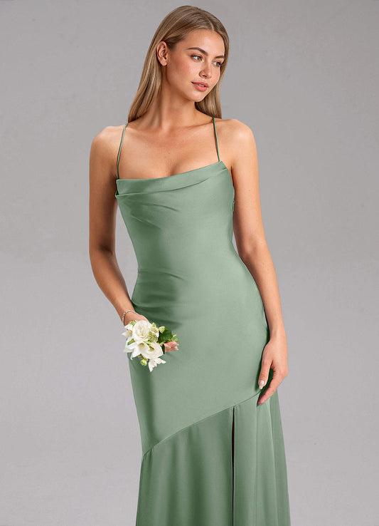 Dusty Sage Mermaid V-Neck Pleated Chiffon Dress