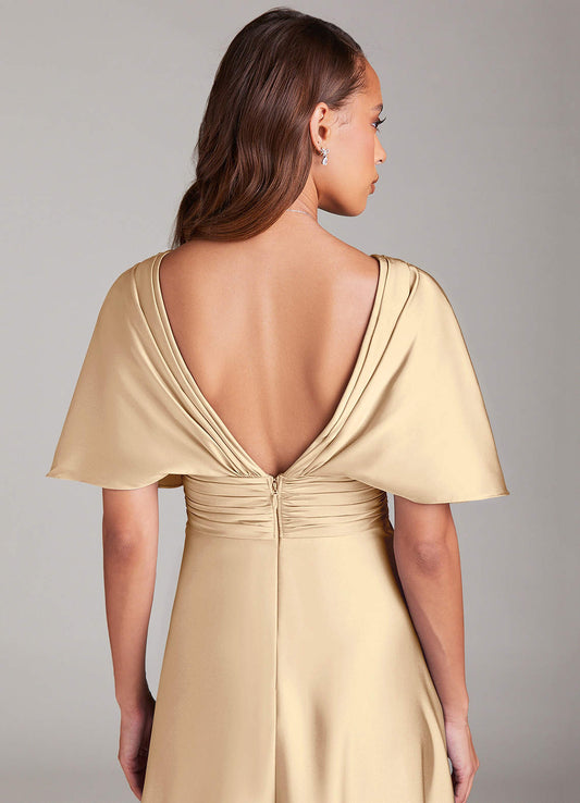 Terracotta A-Line Long Sleeve Stretch Satin Dress