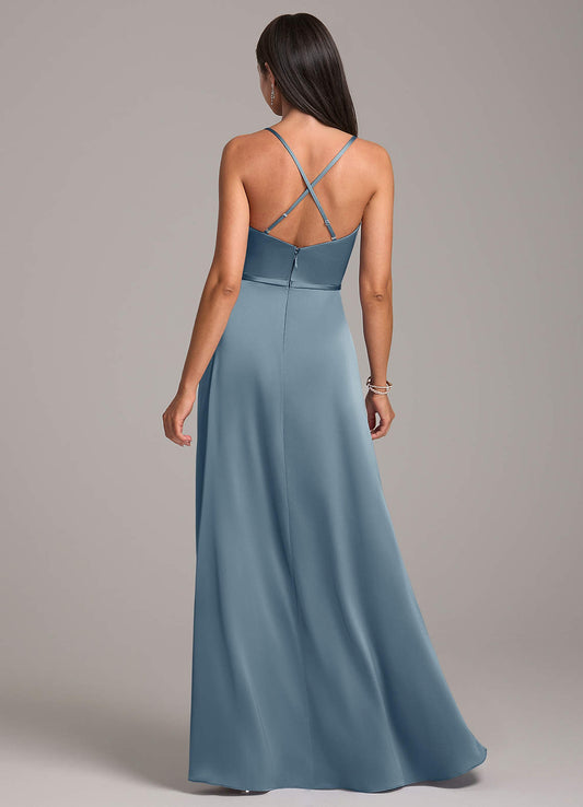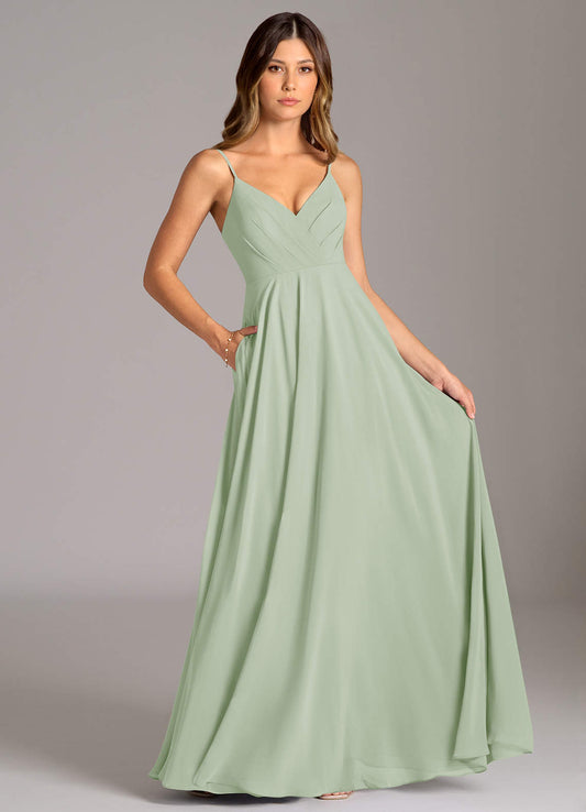 Eucalyptus A-Line V-Neck Ruffle Chiffon Dress
